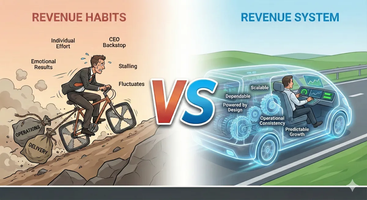 If revenue only moves when someone pedals harder, you don’t have a system, you have a habit. Most